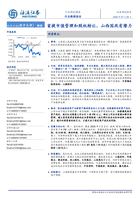 【海通证券】【20200706】20200706-海通证券-煤炭行业跟踪报告:首提市值管理和股权转让,山西国改有潜力-2页