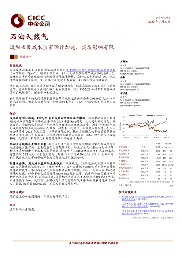 【中金公司】【20200705】石油天然气:城燃项目成本监审预计加速,实质影响有限-5页