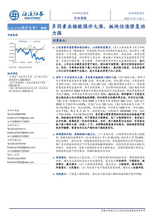 【海通证券】【20200706】20200706-海通证券-煤炭行业周报:多因素共振致煤价大涨,板块估值修复动力强-2页