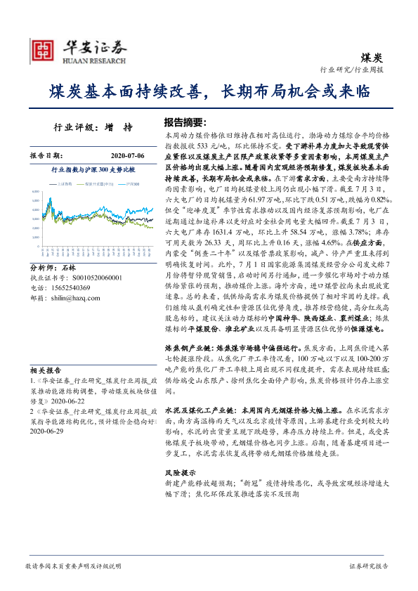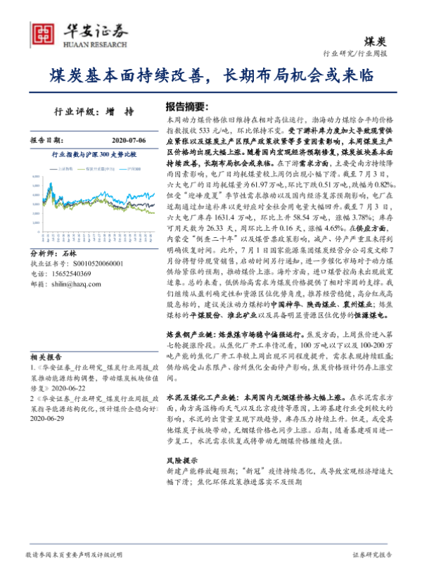 【华安证券】【20200706】20200706-华安证券-煤炭行业周报:煤炭基本面持续改善,长期布局机会或来临-21页