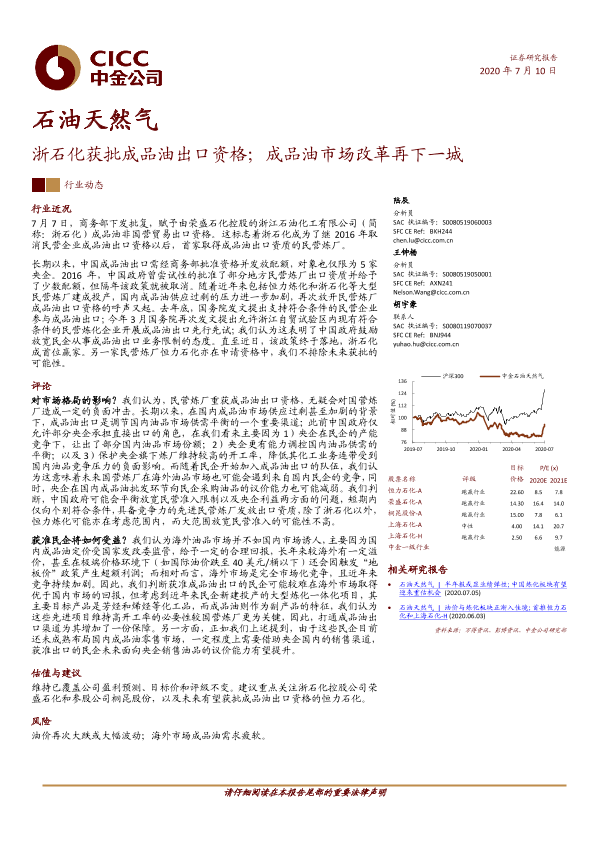 【中金公司】【20200710】石油天然气行业动态:浙石化获批成品油出口资格;成品油市场改革再下一城-5页