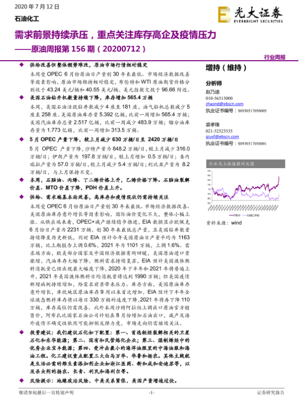 【光大证券】【20200712】20200712-光大证券-原油周报第156期:需求前景持续承压,重点关注库存高企及疫情压力-12页