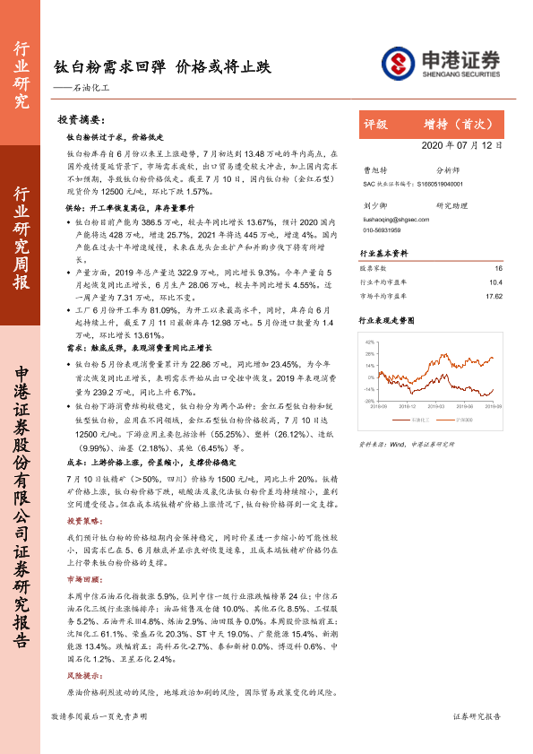 【申港证券】【20200712】20200712-申港证券-石油化工行业研究周报:钛白粉需求回弹 价格或将止跌-24页