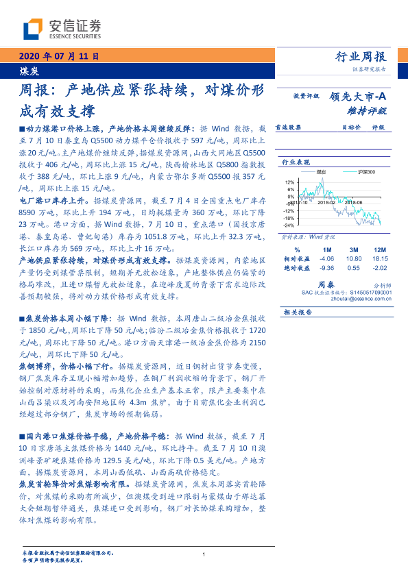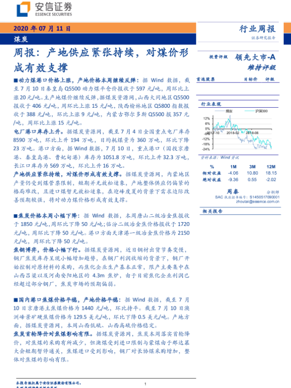 【安信证券】【20200711】20200711-安信证券-煤炭周报:产地供应紧张持续,对煤价形成有效支撑-26页