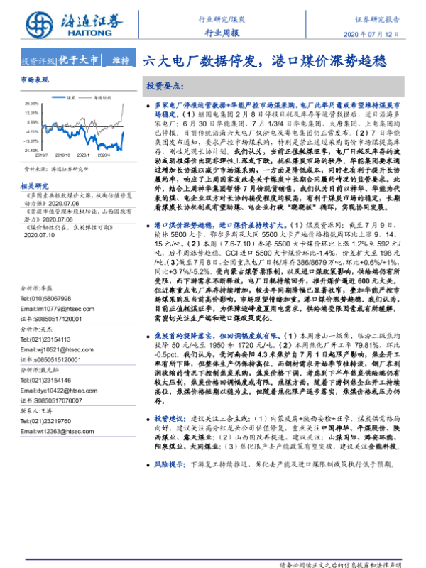 【海通证券】【20200712】20200712-海通证券-煤炭行业周报:六大电厂数据停发,港口煤价涨势趋稳-2页