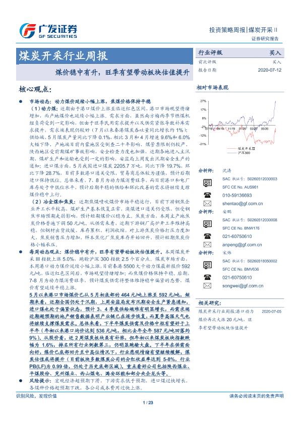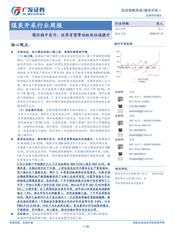 【广发证券】【20200712】20200712-广发证券-煤炭开采行业周报:煤价稳中有升,旺季有望带动板块估值提升-23页