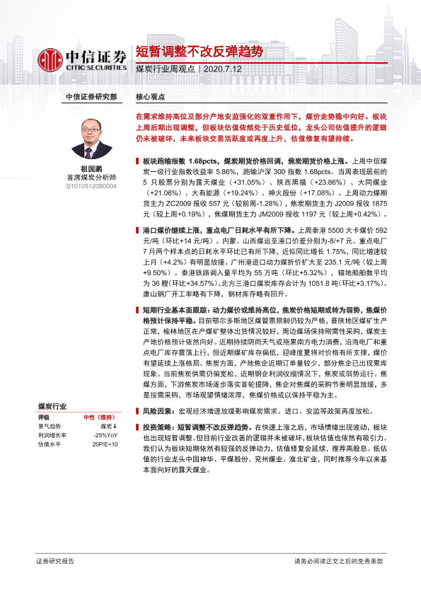 【中信证券】【20200712】20200712-中信证券-煤炭行业周观点:短暂调整不改反弹趋势-8页