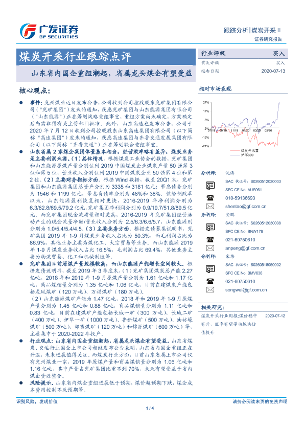 【广发证券】【20200713】20200713-广发证券-煤炭开采行业跟踪点评:山东省内国企重组潮起,省属龙头煤企有望受益-4页