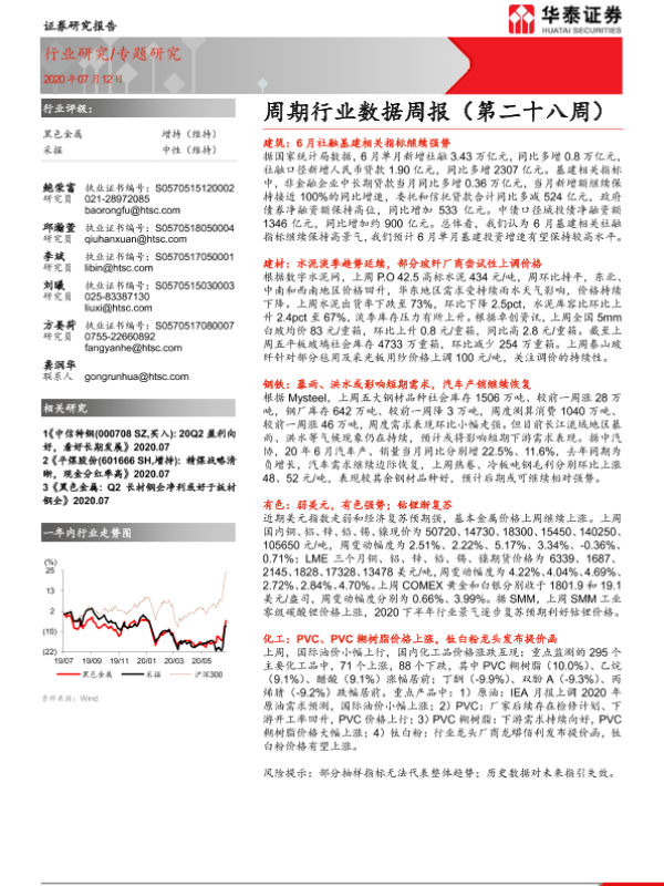 【华泰证券】【20200712】20200712-华泰证券-采掘黑色金属周期行业数据周报(第二十八周)-43页