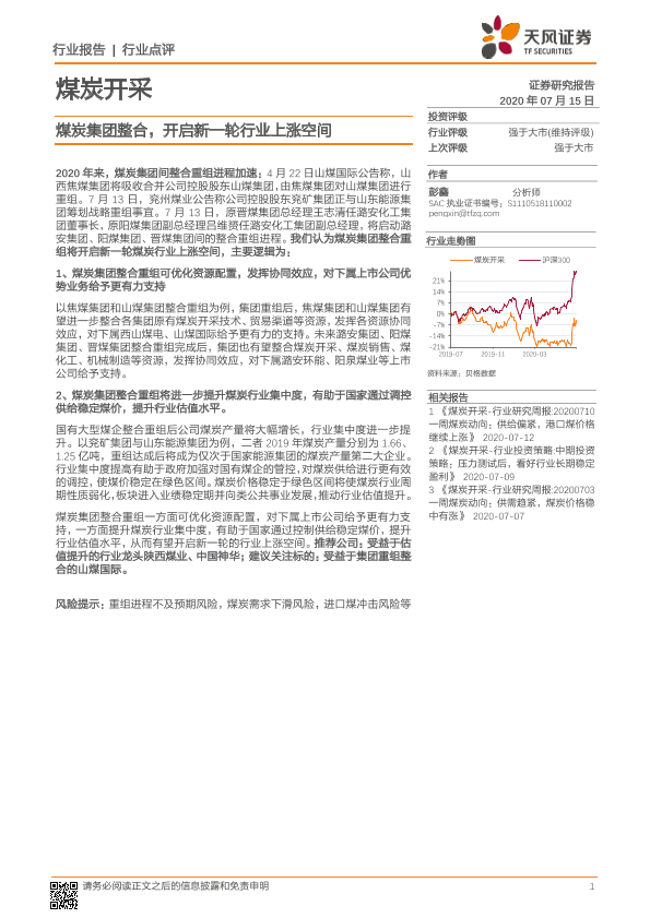 【天风证券】【20200715】煤炭开采行业点评:煤炭集团整合,开启新一轮行业上涨空间-4页