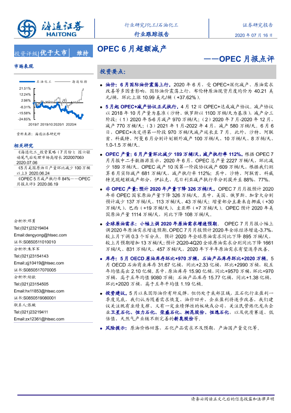 【海通证券】【20200716】OPEC月报点评:OPEC6月超额减产-5页