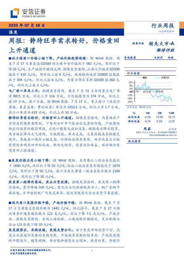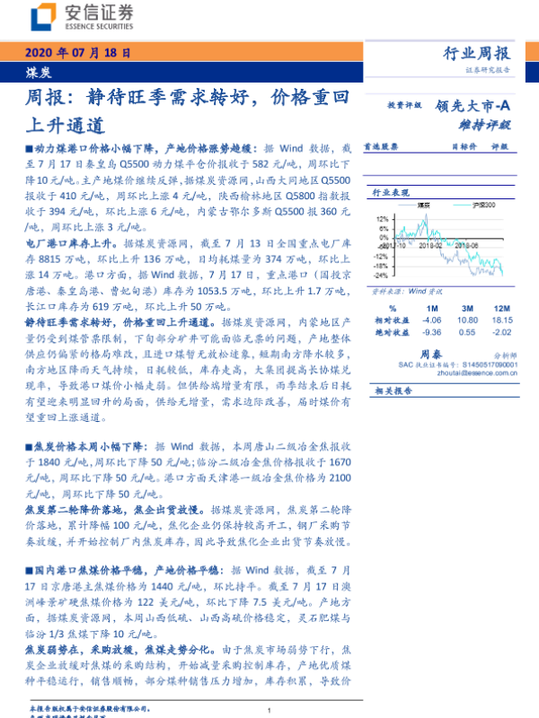 【安信证券】【20200718】20200718-安信证券-煤炭周报:静待旺季需求转好,价格重回上升通道-26页