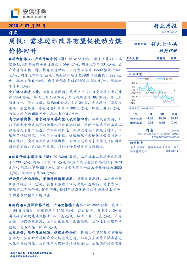【安信证券】【20200725】20200725-安信证券-煤炭周报:需求边际改善有望促使动力煤价格回升-27页