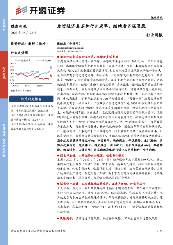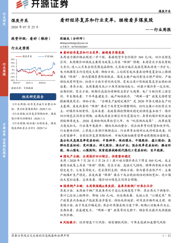 【开源证券】【20200725】煤炭开采行业周报:看好经济复苏和行业变革,继续看多煤炭股-21页
