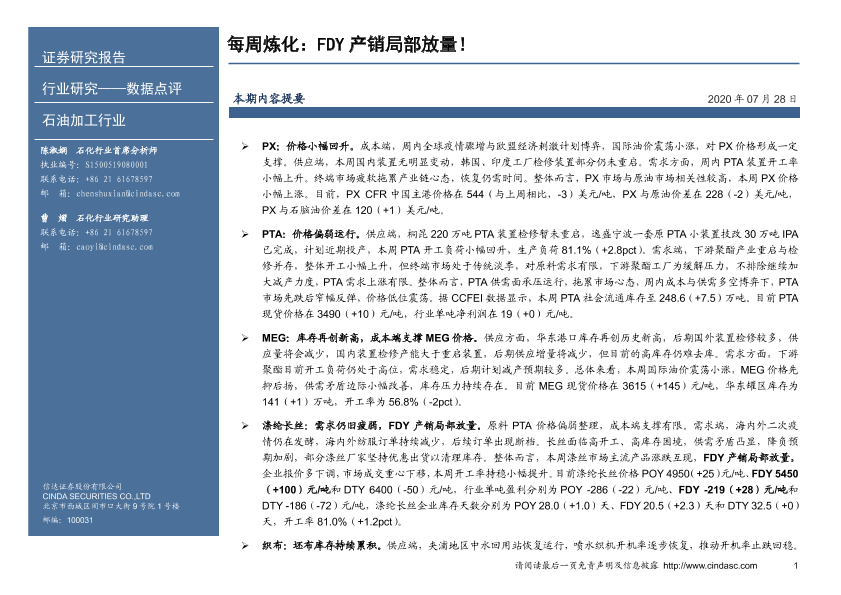 【信达证券】【20200728】每周炼化:FDY产销局部放量!-10页