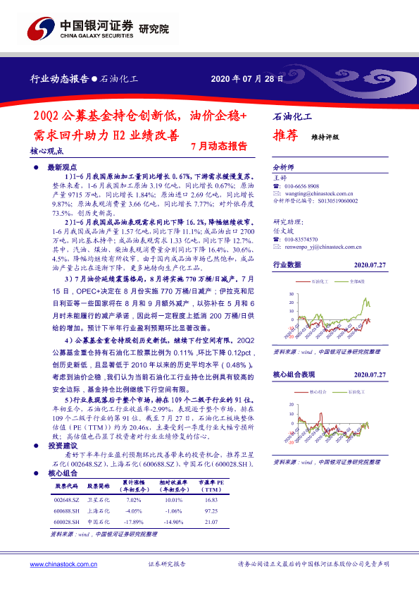【银河证券】【20200728】20200728-中国银河-石油化工7月动态报告:20Q2公募基金持仓创新低,油价企稳+需求回升助力H2业绩改善-28页