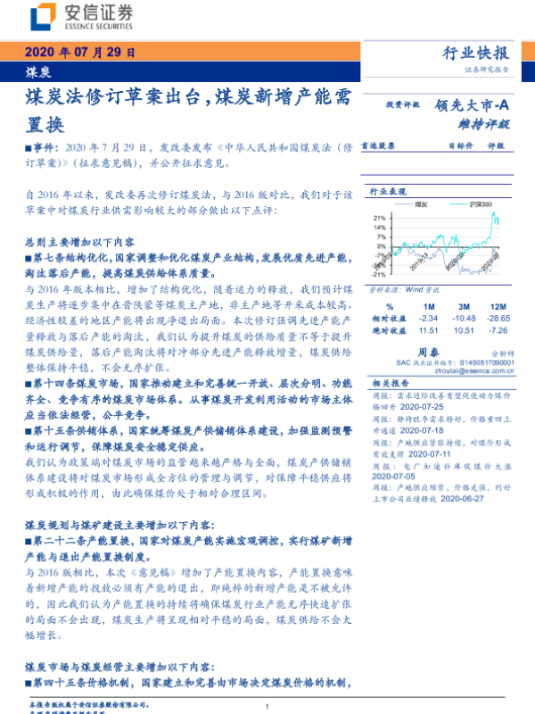 【安信证券】【20200729】20200729-安信证券-煤炭行业快报:煤炭法修订草案出台,煤炭新增产能需置换-4页