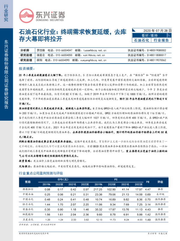 【东兴证券】【20200728】石油石化行业:终端需求恢复延缓,去库存大幕即将拉开-21页