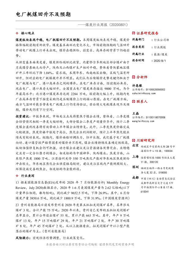 【川财证券】【20200801】煤炭行业周报:电厂耗煤回升不及预期-12页