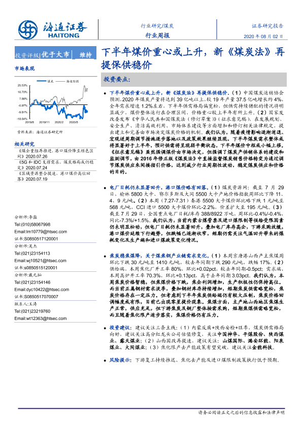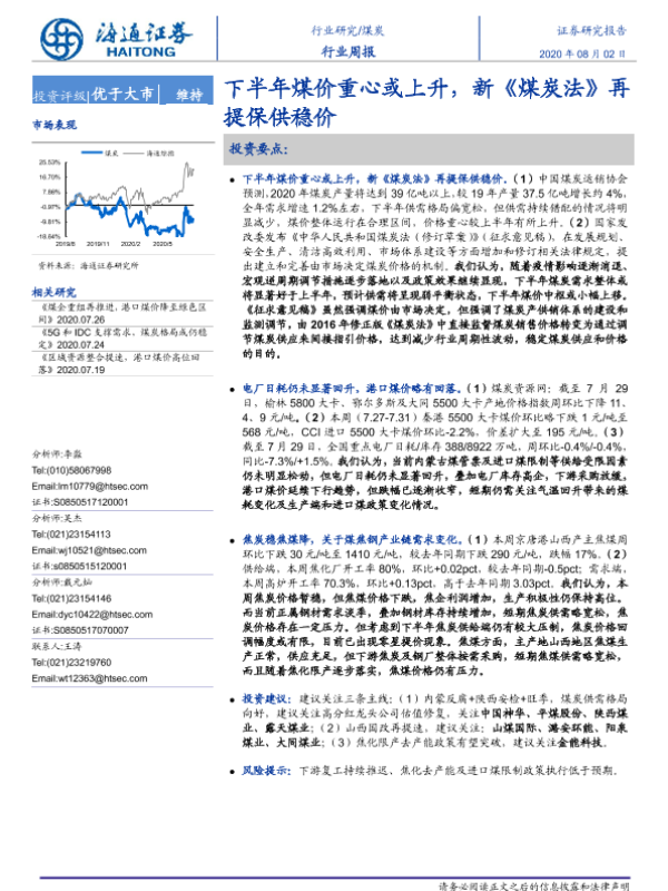 【海通证券】【20200802】20200802-海通证券-煤炭行业周报:下半年煤价重心或上升,新《煤炭法》再提保供稳价-2页