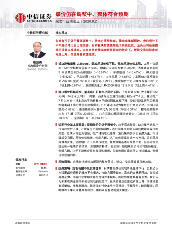 【中信证券】【20200802】20200802-中信证券-煤炭行业周观点:煤价仍在调整中,整体符合预期-8页