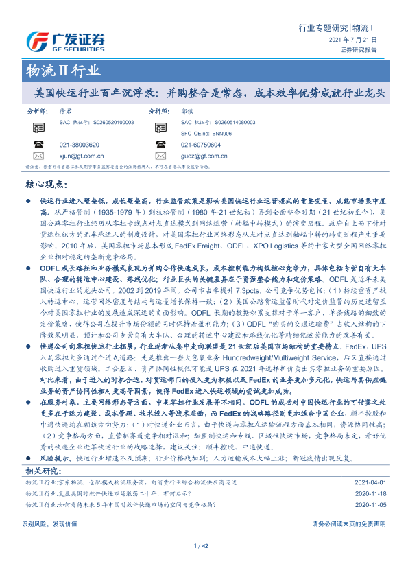 【广发证券】【20210721】物流行业美国快运行业百年沉浮录:并购整合是常态,成本效率优势成就行业龙头-42页