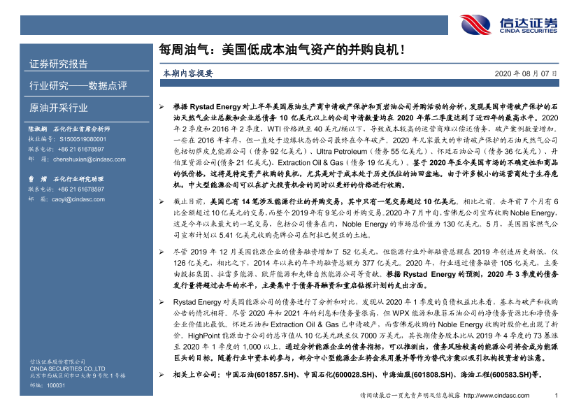 【信达证券】【20200807】每周油气:美国低成本油气资产的并购良机!-7页