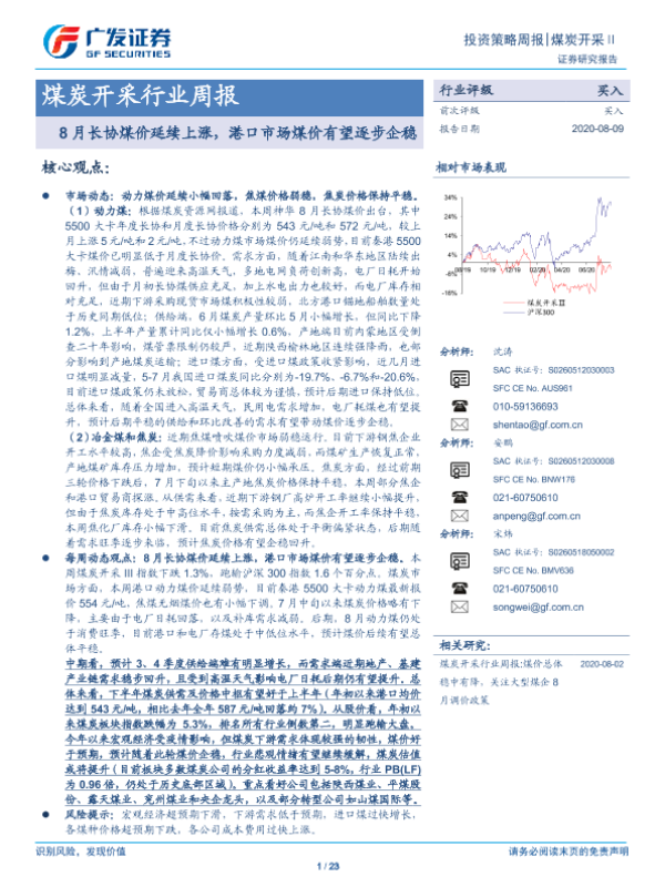 【广发证券】【20200809】20200809-广发证券-煤炭开采行业周报:8月长协煤价延续上涨,港口市场煤价有望逐步企稳-23页