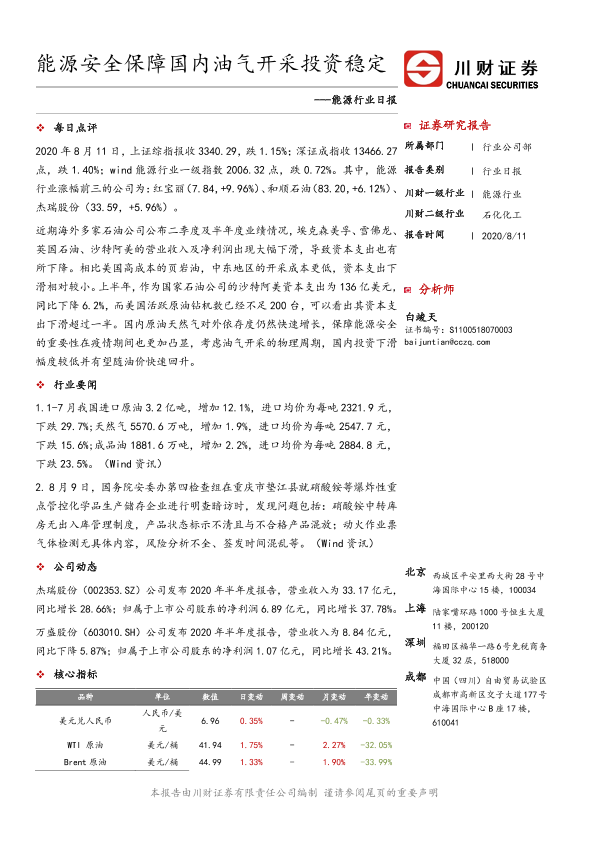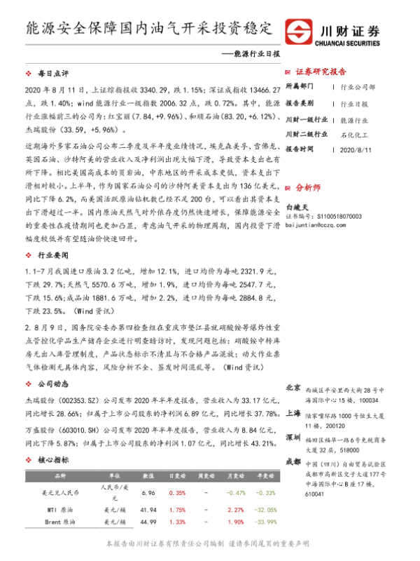 【川财证券】【20200811】能源行业日报:能源安全保障国内油气开采投资稳定-3页