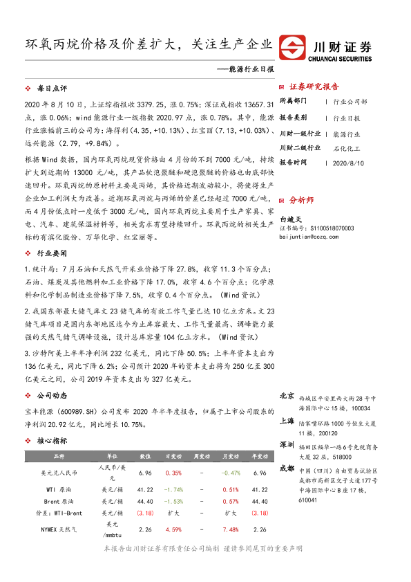 【川财证券】【20200810】能源行业日报:环氧丙烷价格及价差扩大,关注生产企业-3页