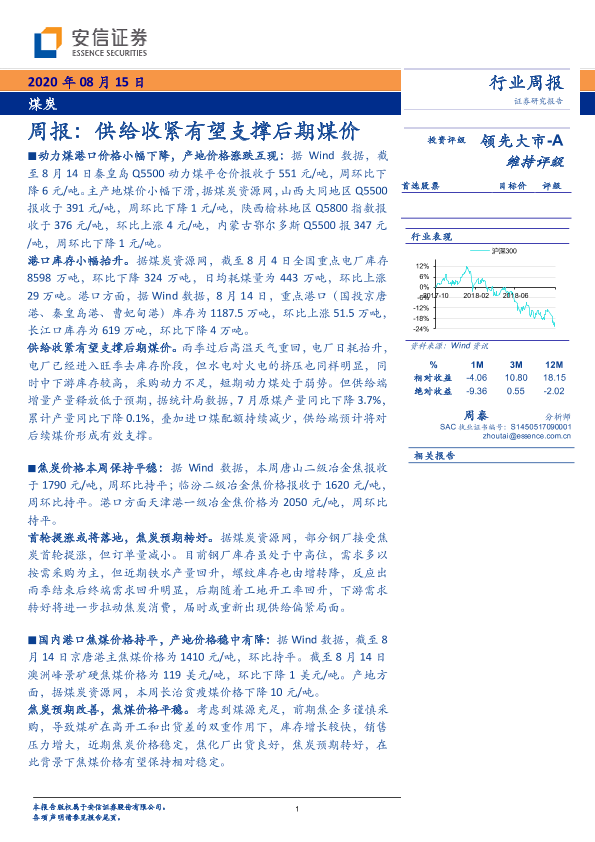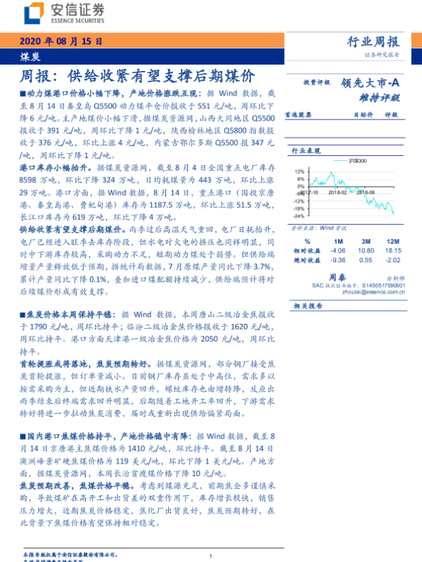 【安信证券】【20200815】20200815-安信证券-煤炭行业周报:供给收紧有望支撑后期煤价-25页