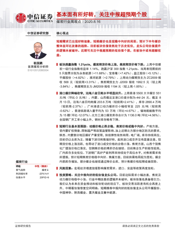【中信证券】【20200816】20200816-中信证券-煤炭行业周观点:基本面有所好转,关注中报超预期个股-7页