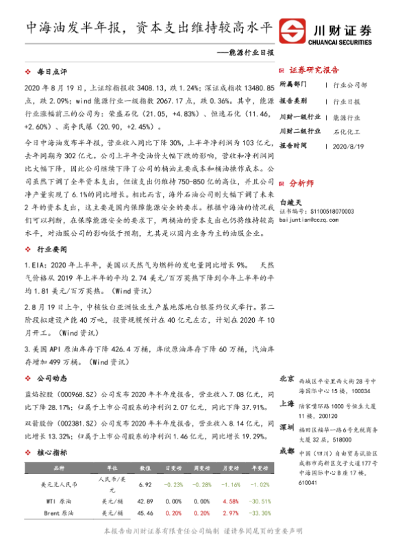 【川财证券】【20200819】能源行业日报:中海油发半年报,资本支出维持较高水平-3页