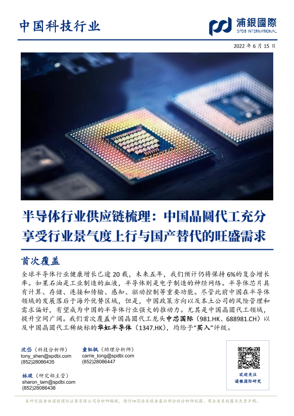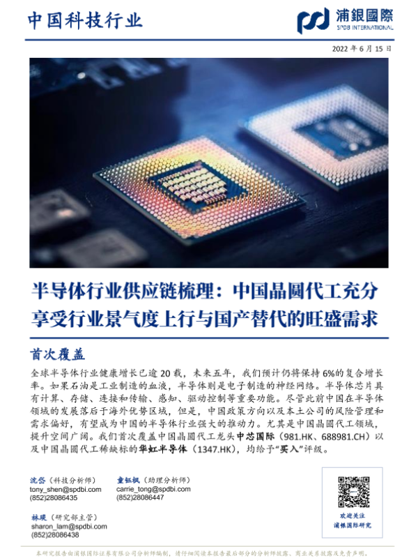 【浦银国际】【20220615】半导体行业供应链梳理:中国晶圆代工充分享受行业景气度上行与国产替代的旺盛需求-104页