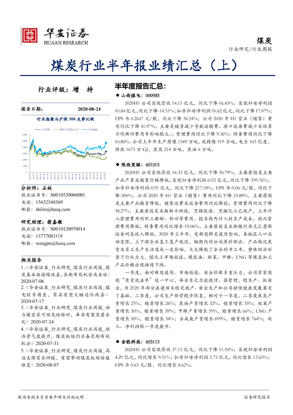 【华安证券】【20200824】20200824-华安证券-煤炭行业周报:煤炭行业半年报业绩汇总(上)-25页
