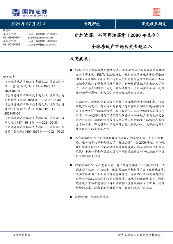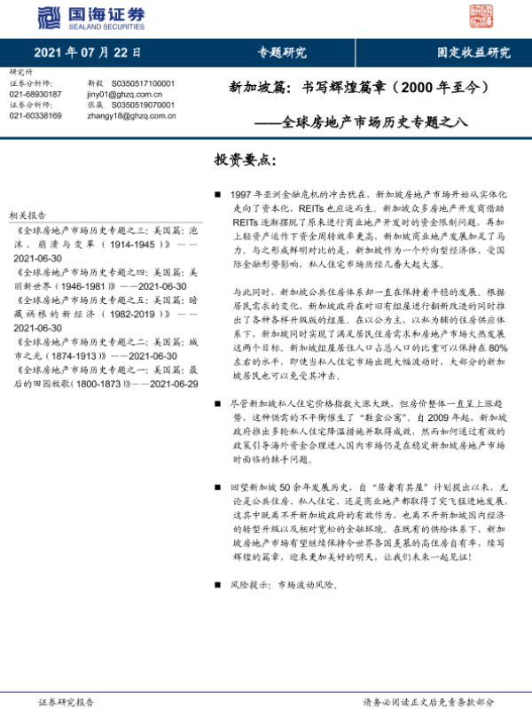 【国海证券】【20210722】球房地产市场历史专题之八:新加坡篇,书写辉煌篇章(2000年至今)-13页