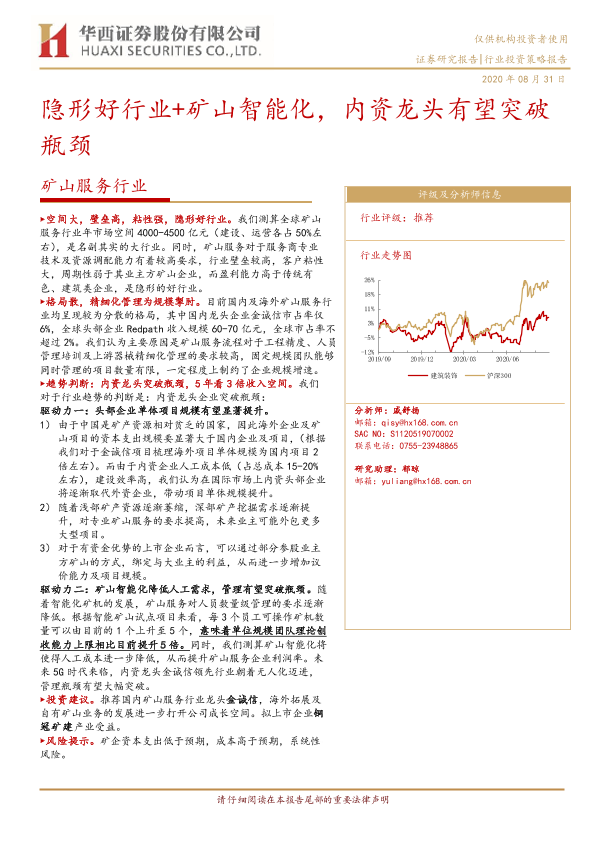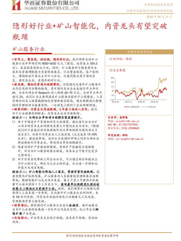 【华西证券】【20200831】20200831-华西证券-矿山服务行业:隐形好行业+矿山智能化,内资龙头有望突破瓶颈-18页