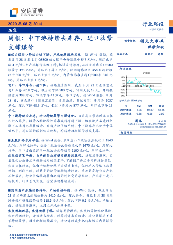 【安信证券】【20200830】20200830-安信证券-煤炭周报:中下游持续去库存,进口收紧支撑煤价-25页
