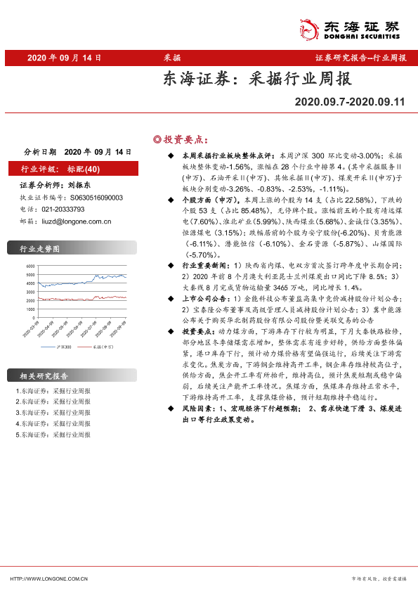 【东海证券】【20200914】东海证券-采掘行业周报-9页