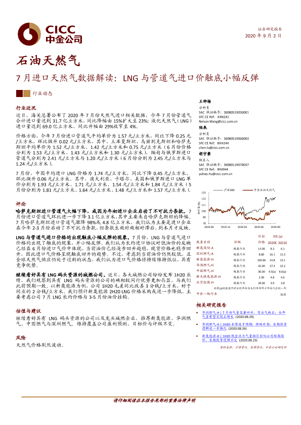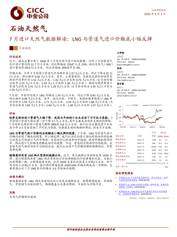 【中金公司】【20200902】7月进口天然气数据解读:LNG与管道气进口价触底小幅反弹-8页