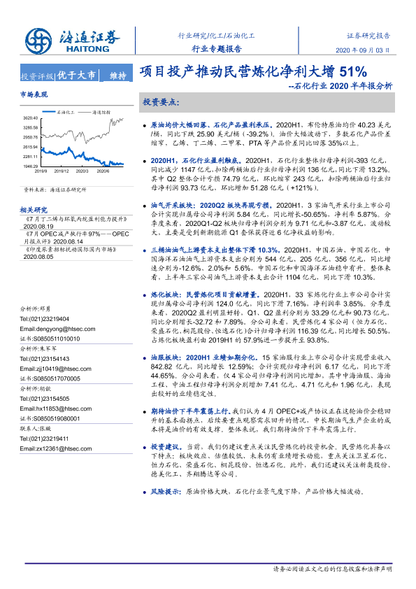 【海通证券】【20200903】石化行业2020半年报分析:项目投产推动民营炼化净利大增51%-20页
