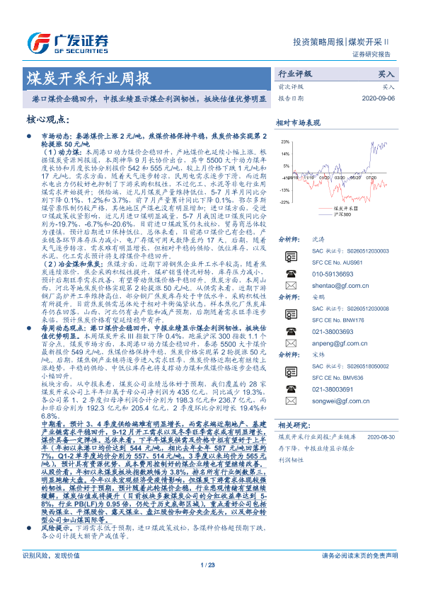 【广发证券】【20200906】20200906-广发证券-煤炭开采行业周报:港口煤价企稳回升,中报业绩显示煤企利润韧性,板块估值优势明显-23页