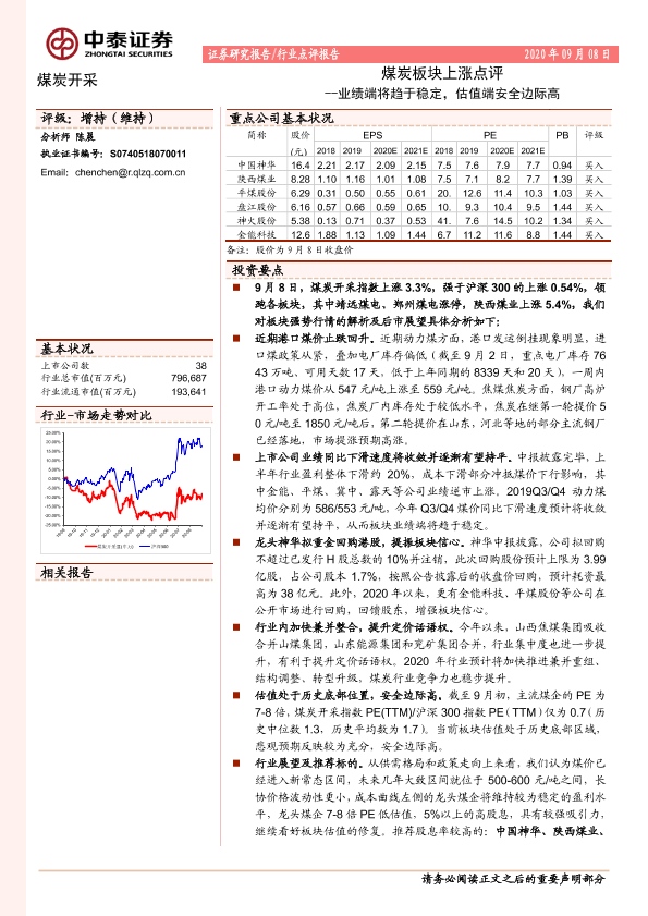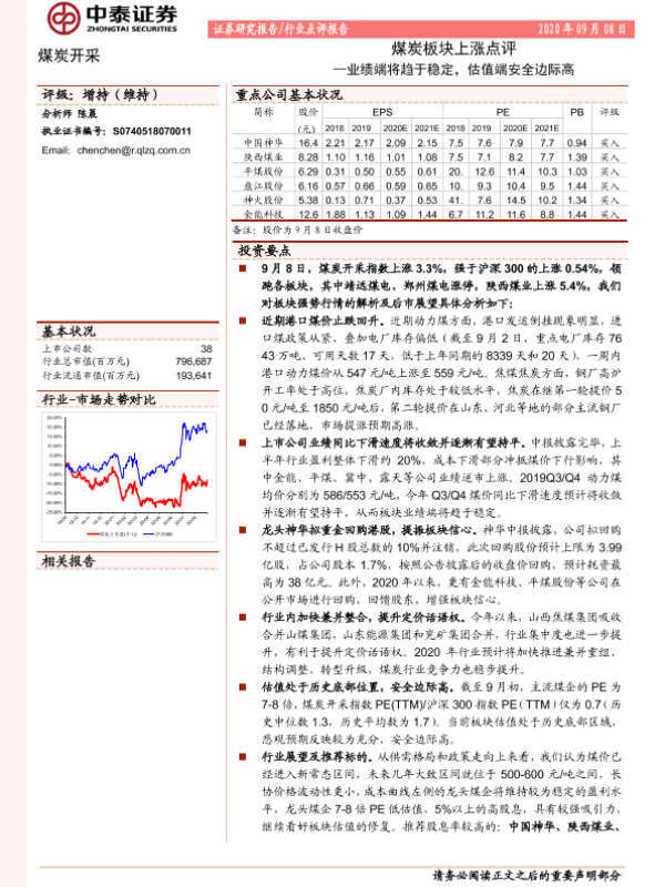 【中泰证券】【20200908】20200908-中泰证券-煤炭板块上涨点评:业绩端将趋于稳定,估值端安全边际高-6页