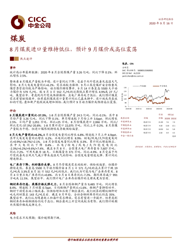 【中金公司】【20200916】8月煤炭进口量维持低位,预计9月煤价或高位震荡-4页