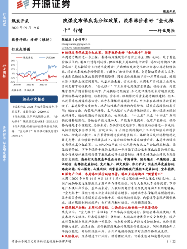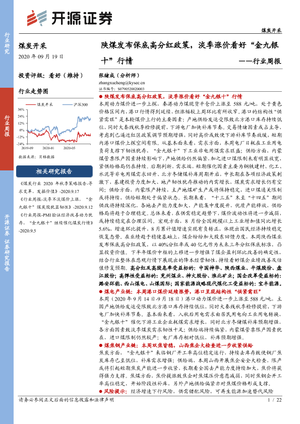 【开源证券】【20200919】煤炭开采行业周报:陕煤发布保底高分红政策,淡季涨价看好“金九银十”行情-22页