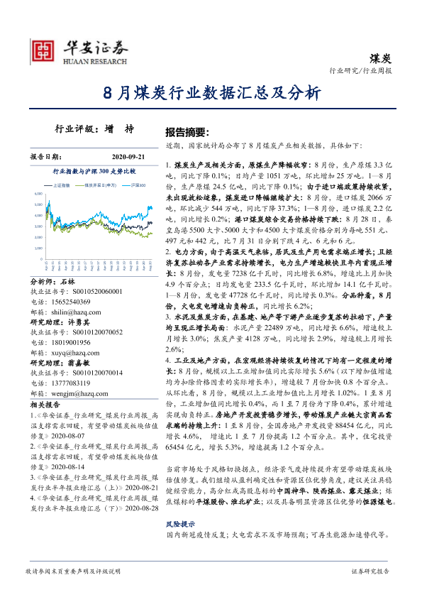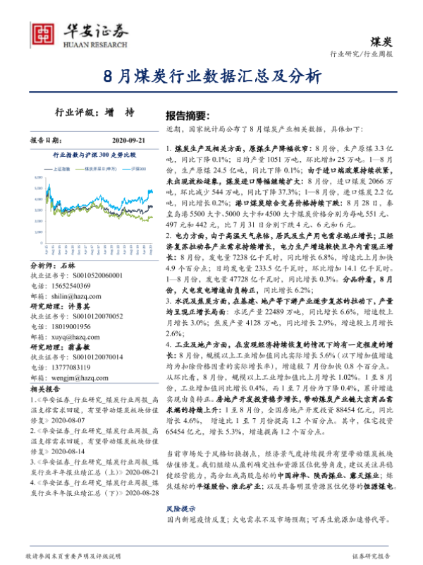 【华安证券】【20200921】20200921-华安证券-煤炭行业周报:8月煤炭行业数据汇总及分析-21页