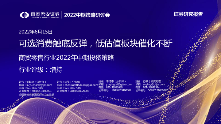 【国泰君安证券】【20220615】商贸零售行业2022年中期投资策略:可选消费触底反弹,低估值板块催化不断-75页