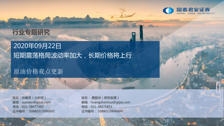 【国泰君安证券】【20200922】原油价格观点更新:短期震荡格局波动率加大,长期价格将上行-24页