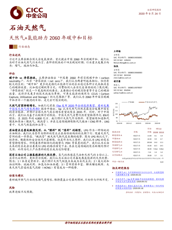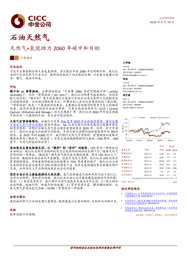 【中金公司】【20200924】石油天然气:天然气+氢能助力2060年碳中和目标-6页