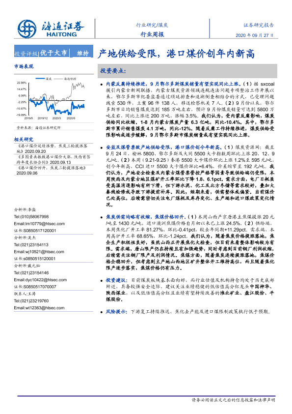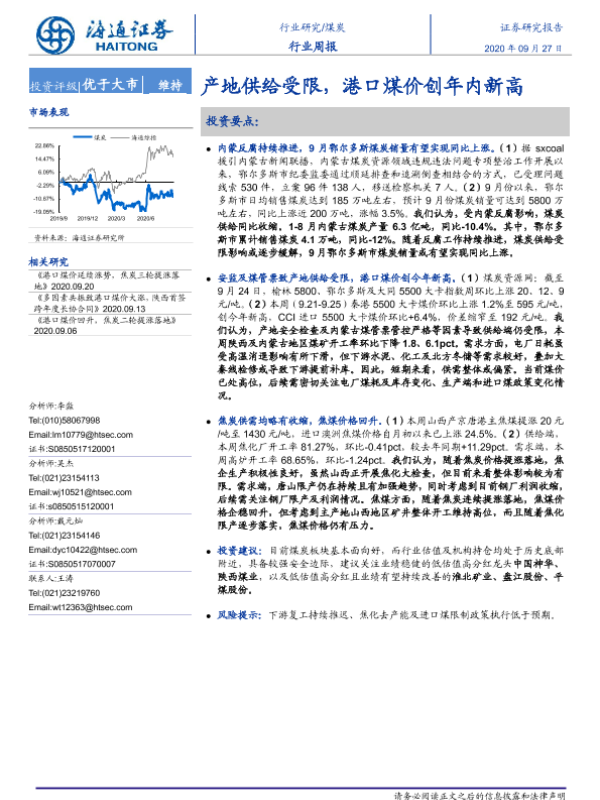 【海通证券】【20200927】20200927-海通证券-煤炭行业周报:产地供给受限,港口煤价创年内新高-2页